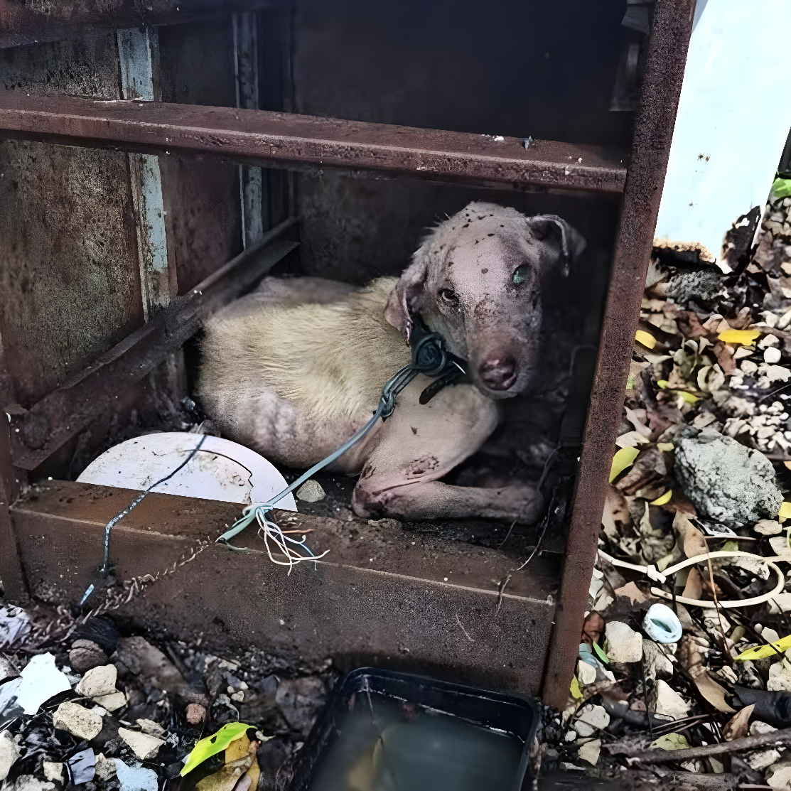 В одном забытом уголке, где обостренный ветер сквозь корявые железные листы шептал свои мрачные песни, старая ржавая конструкция метафорически превратилась в «тюрьму» для несчастного создания. Внутри замка без надежды, прижался хрупкий пес, дрожащий от страха и холода, словно лист, готовый сорваться с ветки. Каждый вдох был мучительно слаб, заставляя прохожих наклоняться, чтобы увидеть, как его истощенная грудь едва поднимается и опускается.