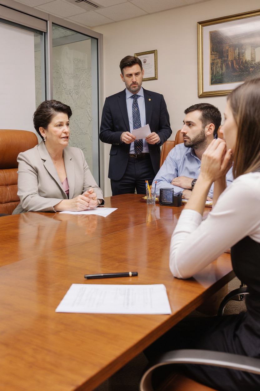В приёмной уже сидели мать Валентина Петровна и брат Михаил. Мать была одета празднично, в новый костюм, а на лице у неё играла довольная улыбка. Михаил выглядел спокойно и уверенно, листал какие-то документы.