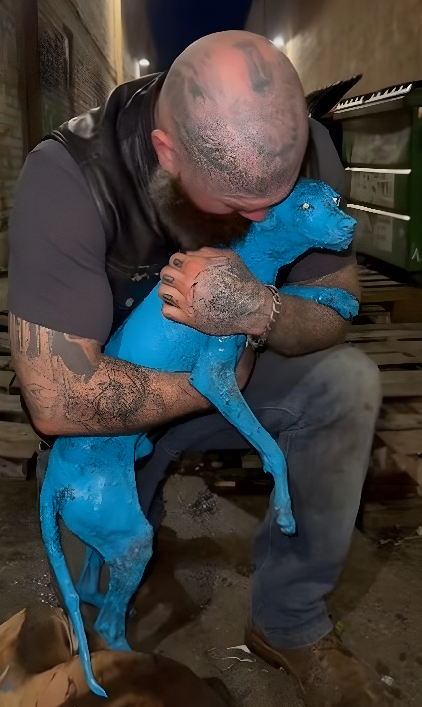 Это была собака, покрытая толстыми слоями синей промышленной краски, жесткая, как камень, и едва живущая. Бедолага не мог сдвинуться с места, его шерсть превратилась в замороженную оболочку, запершую его в безвыходной ситуации.
