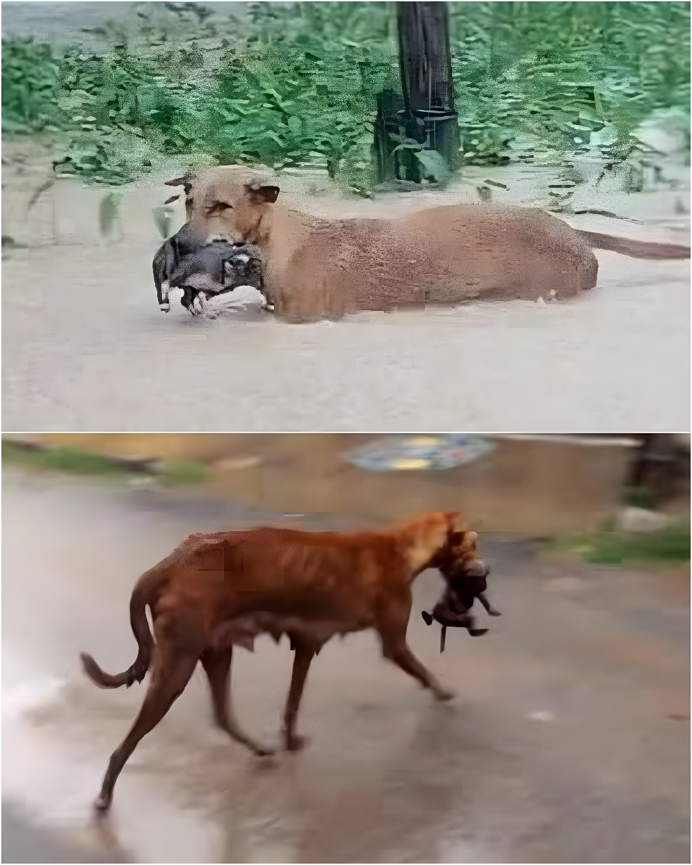 Проживающие в округе впервые заметили эту отчаянную сцену, когда собака с трудом пыталась удержать равновесие, сражаясь с нарастающим потоком воды. Успев уцепиться за небольшую платформу во дворе, она подтолкнула каждого щенка к безопасности, guiding их одного за другим сквозь опасные воды. Ее действия были продуманными, осторожными, но полными срочности — инстинкт матери переплетался с острым осознанием опасности.