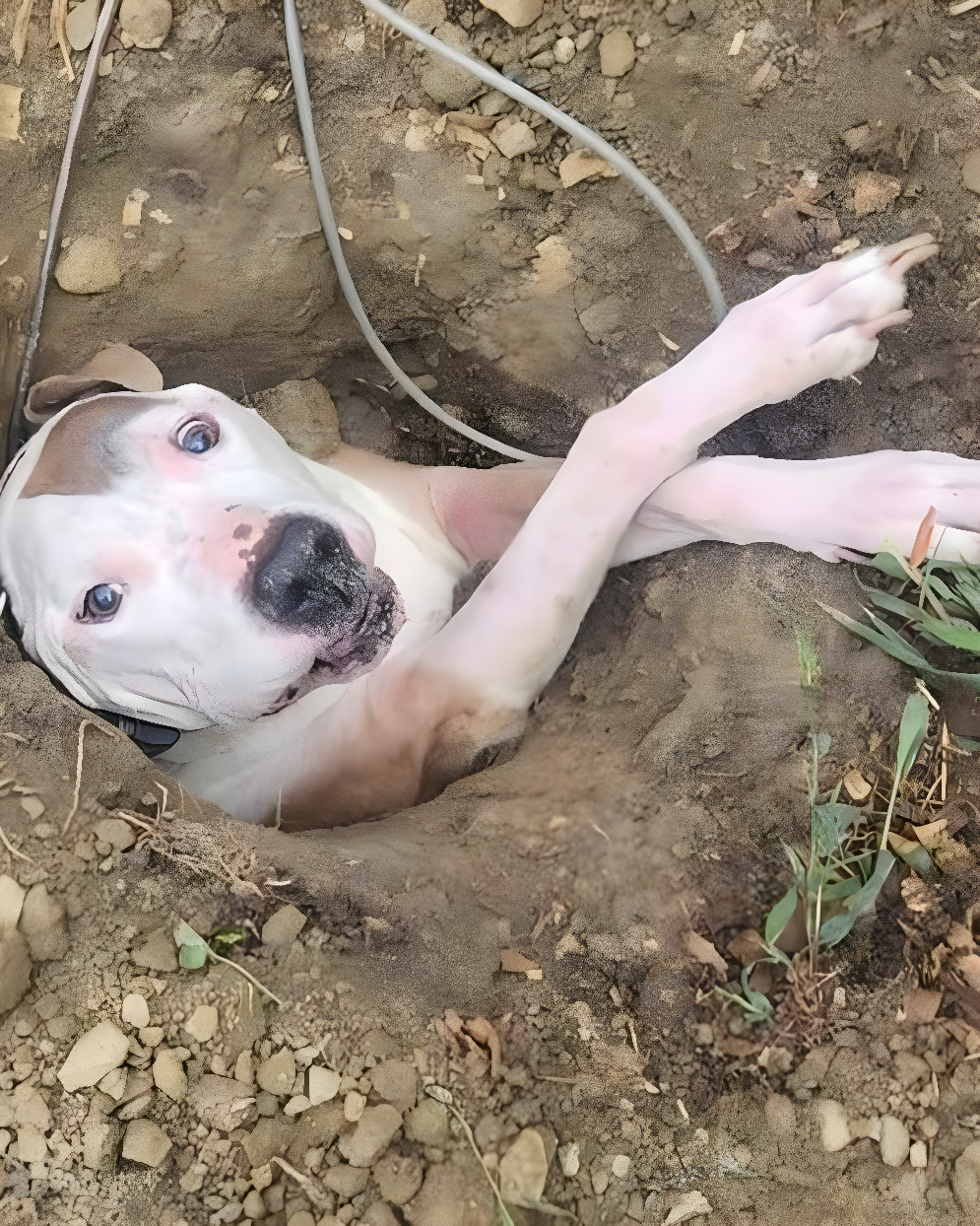 Один из спасателей остановился, подойдя ближе к скоплению веток. Слабый звук пробился сквозь темноту — слабый и дрожащий. Это не был лай. Это был звук страха. Они последовали за ним. Один луч света вырвался сквозь грязь и листья. И там, прижатый к холодной земле, был Мило. Его шерсть была мокрой, дыхание поверхностным, а глаза широко распахнулись от страха и недоумения. Он пытался поднять голову, но не имел сил. Спасатели сразу поняли, что время имеет решающее значение.