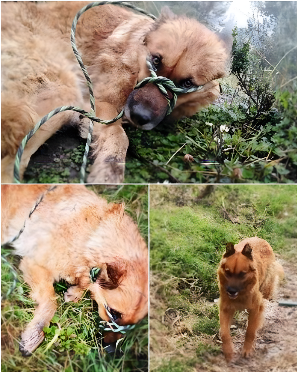 Przewiązana do słupa z przetartą liną, została pozostawiona sama w mroźnej dolinie, jej ciało drżało, gdy deszcz przemakał jej cienką sierść. Noce były najtrudniejsze – długie godziny drżenia w ciemności, gdy jej uszy opadły nisko, słuchając dźwięków, których nie mogła zrozumieć. Głód dźgał jej brzuch, a strach oplatał jej maleńką sylwetkę. Mimo to, w najtrudniejszych chwilach, trzymała się, jakby czekała na coś – kogoś, kto ją odnajdzie.