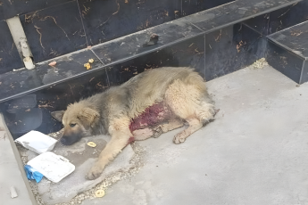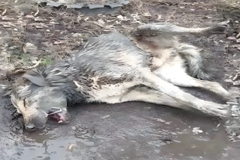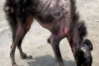 Никто не мог сдержать слез, наблюдая за ужасным состоянием беззащитной собаки, лежащей в холодной грязи