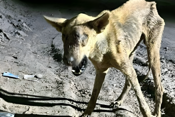 Wzruszająca scena, która wstrząsa każdą osobą, która ją zobaczy. Mały piesek, skrajnie osłabiony, z całym
