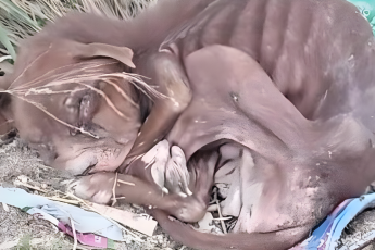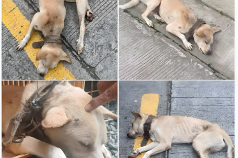 В гудящем потоке автомобилей развернулась трогательная сцена: худой и дрожащий щенок рухнул на холодную